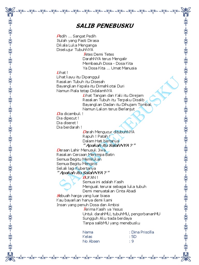 Puisi salib penebusku. Sagala berjudul Salib Penebus ku di ibadah Jumat Agung GKPI JK Cipayung. Lirik lagu rohani tentang kasih tuhan bapa yesus kristus allah kepada anak dan hambanya. Saya menyimpannya di dalam hatiku.