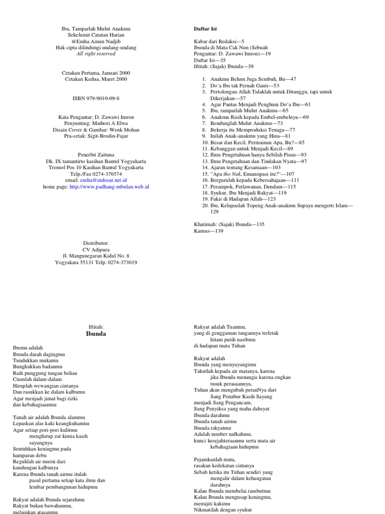 Wikipedia bahasa indonesia berikut adalah kumpulan puisi cak nun emha ainun najib. Emha Ainun Nadjib. Pula telah engkau dirikan masjid.