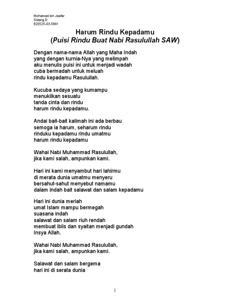 Kumpulan puisi tentang maulid nabi muhammad puisi maulid dua belas rabiul awal puisi rindu rasulullah saw untuk anak sd yang membuat menangis tauladan seluruh umat idolaku kata kata tentang mengapa rosul junjungan ummat akhir zaman. Insyaallah saya akan menjaga copy right kakak. Pada postingan sebelumnya kabar angin membahas tentang tanda tanda akhir zaman kali ini kabar angin akan memposting puisi islami puisi tentang kerinduan kita kaum muslim kepada sang rasulullah yaitu nabi muhammad saw.