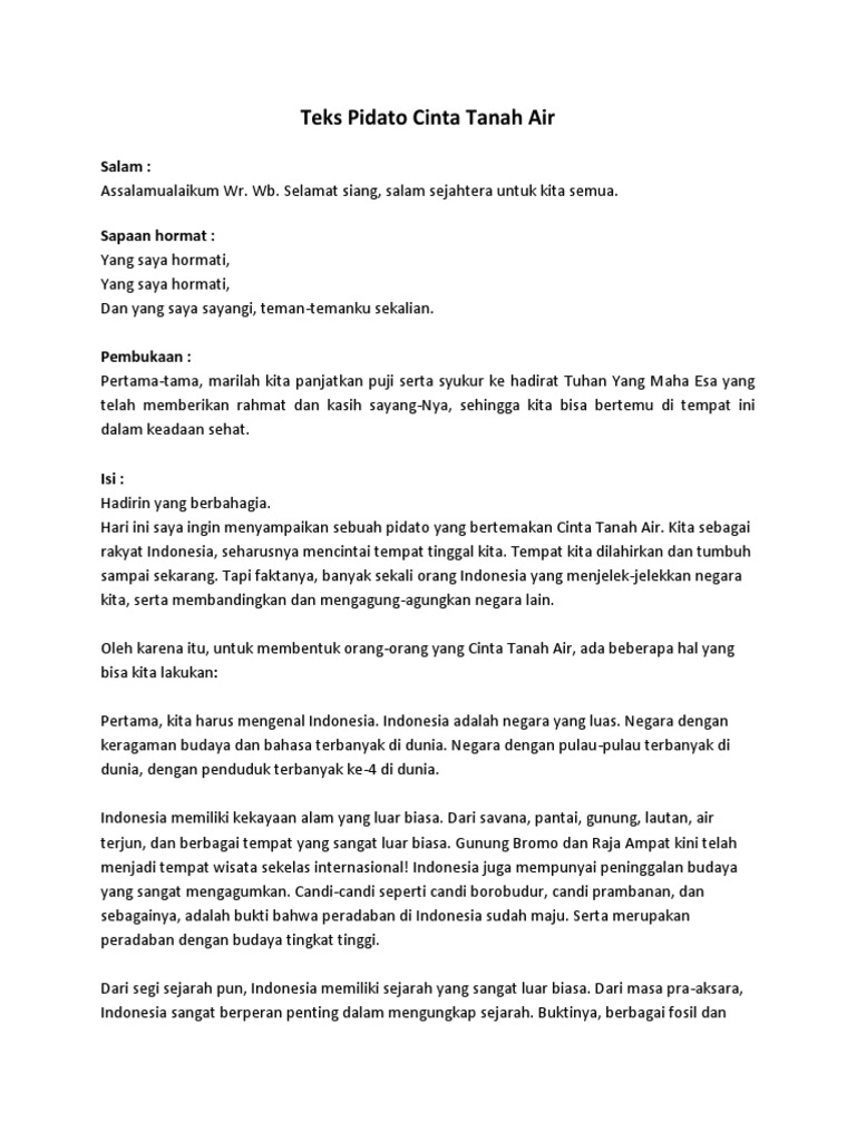 View Kumpulan Puisi Cinta Tanah Airdocx as PDF for free. Namun di usia yang seperti ini adalah usia-usia pemberontakan sehingga kebanyakan anak SMP cenderung bosan jika pidatonya tidak sesuai dan terlalu membosankan. Penuh air mata dalam sepi Ada bercak darah dan tetesan embun bening di matamu Ada sayup-sayup rintihan kalbumu.